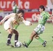 fuera de los tres palos, anotando el segundo gol para el América de Cali.