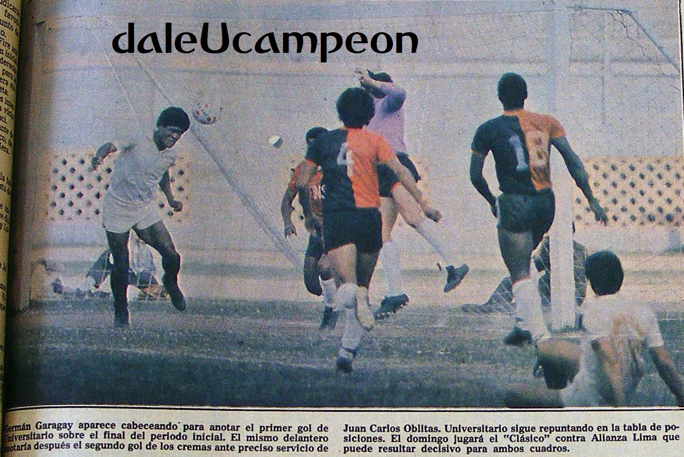 En la imagen, despeje de Juan Carlos Oblitas, triunfo 2-1 de Universitario vs.