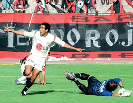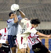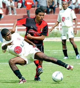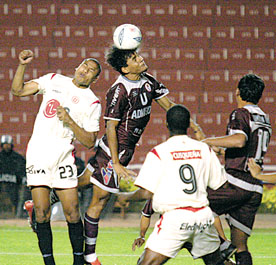 claras opciones de gol. Parecía que la "U" analizaba a su rival y dosificaba energías por el intenso calor. Se hizo trabado y sin brillo, con lucha en la medular donde Casas- Rojas para el local y Carranza-Bernales se repartieron el balón, la entrega y temperamento. Sólo un remate de Maldonado a manos de Lavallén fue la síntesis de un equipo crema, sin creación, y fuerza, que intentó timidamente por el sector de Zúñiga. Pero "Cachete" como llanero solitario no pudo ante Martínez y la zaga norteña. Así se murió