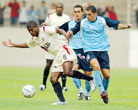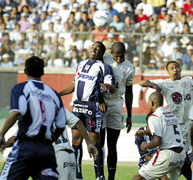 Solar, Paolo Maldonado; Piero Alva e Ysrael Zuñiga. D.T. Ramón Mifflin.