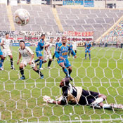 larga distancia, pero siempre encontró una buena resistencia en el golero